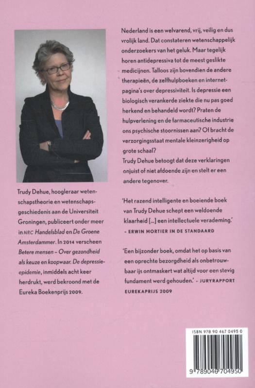 Trudy Dehue bespreekt de geschiedenis van neerslachtigheid. Ze bestudeert de claims van de biopsychiatrie, analyseert de commercialisering van het psychiatrisch onderzoek en de inhoud van de anti-depressivareclames. Ze betoogt dat gangbare verklaringen voor de toename van depressie niet houdbaar of niet volledig zijn.