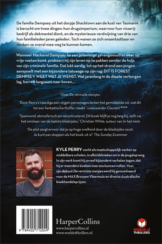 Wanneer Mackerel Dempsey na een jarenlange gevangenisstraf weer op vrije voeten komt, probeert hij zijn leven op te pakken zonder de hulp van zijn criminele familie. Dat lukt aardig, tot op het strand een jongen aanspoelt met een bijzondere tatoeage op zijn rug: DIT IS FOREST DEMPSEY. WEET WAT JE WENST. Wat jarenlang in de diepte verborgen lag, borrelt langzaam naar boven…