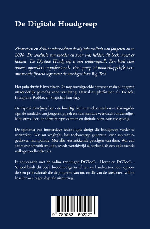 Siewertsen en Schut onderzochten de digitale realiteit van jongeren anno 2026. De conclusie was helder: dit boek moest er komen. De Digitale Houdgreep is een wake-upcall. Een boek voor ouders, opvoeders en professionals. Een oproep tot maatschappelijke verantwoordelijkheid tegenover de meedogenloze Big Tech.