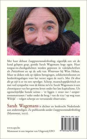 Met haar debuut Loopgravenonderbreking, eigenlijk een uit de hand gelopen grap, gooide Sarah Wagemans hoge ogen. Haar tongue-in-cheekgedichten werden geprezen in vaktijdschriften als Poëziekrant en op de sofa van Winteruur bij Wim Helsen. Maar ze doken ook op tijdens betogingen, solidariteitsfeesten en herdenkingsdagen voor het verzet tegen de nazi’s. Met De diva die ge zijt is er nu een opvolger. Scherp, maatschappijkritisch en met veel sympathie voor de kleine m/v/x: Sarah Wagemans is een chroniqueur van het gewone leven onder het late kapitalisme. Uit ogenschijnlijk banale scènes – ‘er liggen 2 vieux rose / eenpersoonsmatrassen / teder onder de brug / van de E19 / op weg naar Wilrijk’ – volgen scherpe en verrassende observaties.