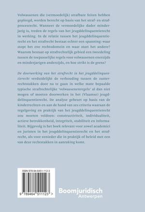 De doorwerking van het strafrecht in het jeugddelinquentierecht beoogt de verhouding tussen de zusterrechtstakken te verduidelijken door na te gaan in welke mate bepaalde typische strafrechtelijke ‘volwassenenregels’ wel of niet mogen of moeten doorwerken in het (Vlaamse) jeugddelinquentierecht. De analyse gebeurt op basis van de kinderrechten en aan de hand van zes criteria waaraan de regelgeving en praktijk van het jeugddelinquentierecht zou moeten voldoen: constructiviteit, individualiteit, actieve betrokkenheid, integriteit, stabiliteit en informaliteit. Bijgevolg is het boek relevant voor zowel academici en juristen in het jeugddelinquentierecht en het strafrecht, als voor eenieder die in praktijk of beleid met een van deze rechtstakken in aanraking komt.