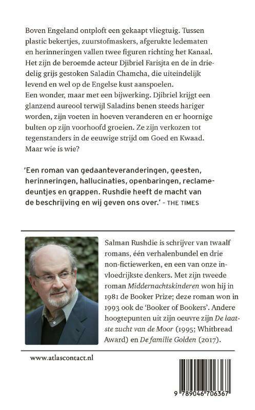 In ‘De duivelsverzen’ van Salman Rusdie ontploft een gekaapt vliegtuig boven Engeland. Tussen plastic bekertjes, zuurstofmaskers, afgerukte ledematen en herinneringen vallen twee figuren richting het Kanaal. Het zijn de beroemde acteur Djibriel Farisjta en de in driedelig grijs gestoken Saladin Chamcha, die uiteindelijk levend en wel op de Engelse kust aanspoelen. Ze zijn verkozen tot tegenstanders in de eeuwige strijd om Goed en Kwaad. Maar wie is wie?