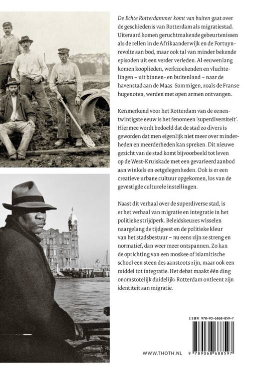 De Echte Rotterdammer komt van buiten gaat over de geschiedenis van Rotterdam als migratiestad. Uiteraard komen geruchtmakende gebeurtenissen als de rellen in de Afrikaanderwijk en de Fortuynrevolte aan bod, maar ook tal van minder bekende episoden uit een verder verleden. Al eeuwenlang komen kooplieden, werkzoekenden en vluchtelingen naar de havenstad aan de Maas. Sommigen, zoals de Franse hugenoten, werden met open armen ontvangen.