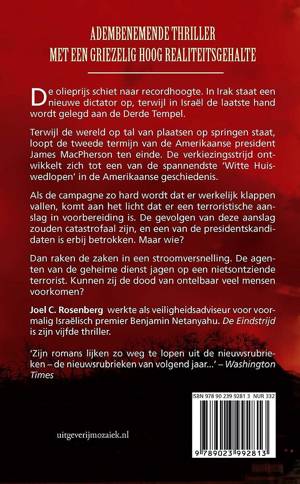 De olieprijs schiet naar een recordhoogte. In Irak staat een nieuwe dictator op, terwijl in Israël de laatste hand wordt gelegd aan de Derde Tempel. Terwijl de wereld op tal van plaatsen op springen staat, loopt de tweede termijn van de Amerikaanse president James MacPherson ten einde. De verkiezingsstrijd ontwikkelt zich tot een van de spannendste 'Witte Huiswedlopen' in de Amerikaanse geschiedenis. Als de campagne zo hard wordt dat er werkelijk klappen vallen, komt aan het licht dat er een terroristische aanslag in voorbereiding is. De gevolgen van deze aanslag zouden catastrofaal zijn, en een van de presidentskandidaten is erbij betrokken. Maar wie? Dan raken de zaken in een stroomversnelling. De agenten van de geheime dienst jagen op een nietsontziende terrorist. Kunnen zij de dood van ontelbaar veel mensen voorkomen?