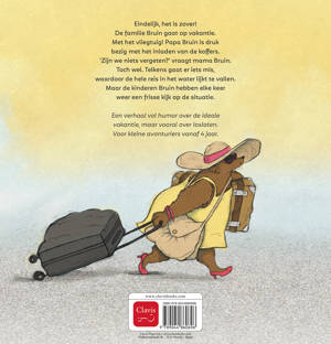 Eindelijk, het is zover! De familie Bruin gaat op vakantie. Met het vliegtuig! Papa Bruin is druk bezig met het inladen van de koffers. ‘Zijn we niets vergeten?’ vraagt mama Bruin. Toch wel. Telkens gaat er iets mis, waardoor de hele reis in het water lijkt te vallen. Maar de kinderen Bruin hebben elke keer weer een frisse kijk op de situatie.