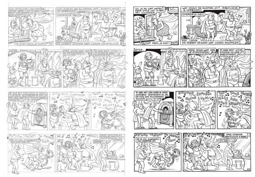Ongekleurde uitgave met het verhaal zowel in schets als in inkt
