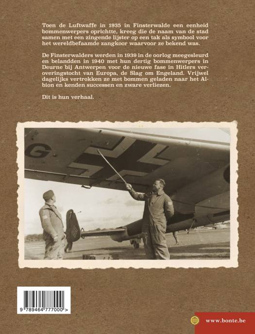Onder de naam ‘Finsterwalders’ gaat een bont allegaartje van Luftwaffepersoneel schuil dat in de periode 1940-41 de luchthaven van Antwerpen - Deurne als thuisbasis had. Van hieruit schreven ze met hun Dornier 17-bommenwerpers mee geschiedenis in wat later als de Slag om Engeland zou genoteerd worden. Ze boekten successen en leden zware verliezen. Dit is hun verhaal.