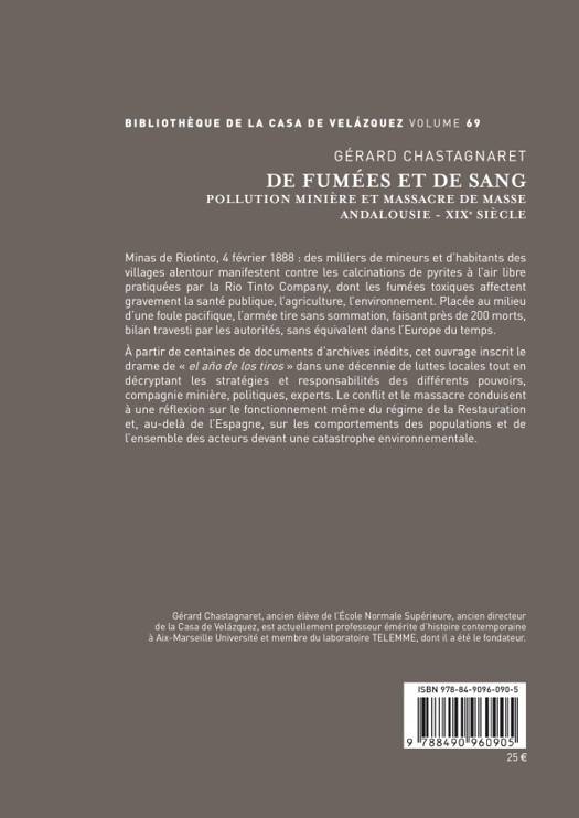 Minas de Riotinto, Andalousie, 4 février 1888 : l?armée tire sur une manifestation de plus de 10 000 personnes réclamant pacifiquement l?arrêt des calcinations de pyrites à l?air libre. Le bilan du massacre est proche de 200 morts. Cet événement, inouï en Europe, est à l?origine d?une enquête sur un combat de plus de dix ans mené par les communes, tout en décryptant les stratégies et responsabilités des différents pouvoirs, compagnie minière, politiques, experts, devant une catastrophe environnementale.