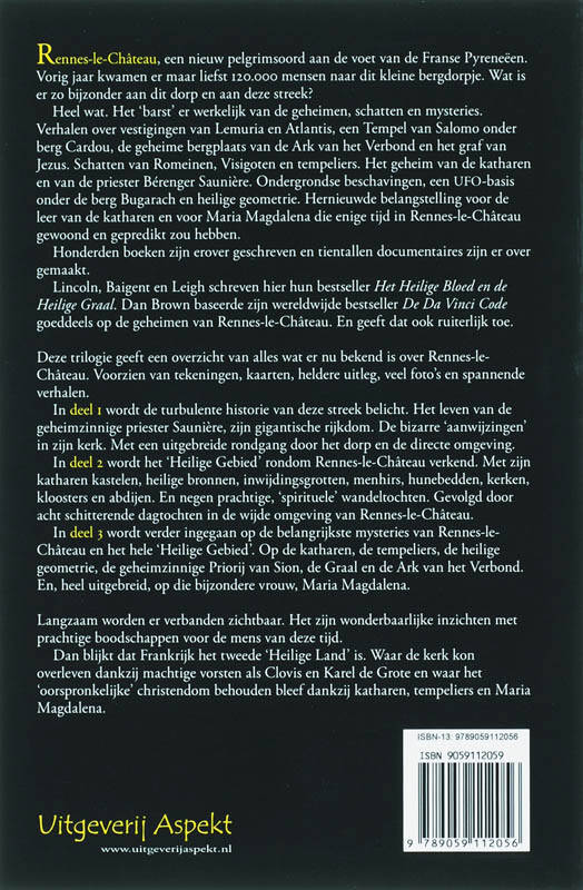 Deze trilogie geeft een overzicht van alles wat er nu bekend is over Rennes-le-Château. Langzaam worden de verbanden zichtbaar. Het zijn wonderbaarlijke inzichten met prachtige boodschappen voor de mens van deze tijd. Frankrijk blijkt het tweede 'Heilige Land', waar de kerk kon overleven dankzij machtige vorsten als Clovis en Karel de Grote. En waar het 'oorspronkelijke' christendom behouden bleef, dankzij katharen, tempeliers en Maria Magdalena.