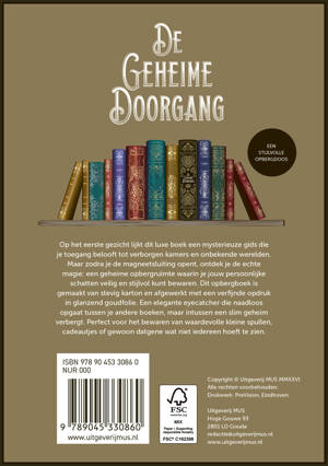 Dit opbergboek is gemaakt van stevig karton en afgewerkt met een verfijnde opdruk in glanzend goudfolie. Een elegante eyecatcher die naadloos opgaat tussen je andere boeken, maar intussen een slim geheim verbergt. Perfect voor het bewaren van waardevolle kleine spullen, cadeautjes of gewoon datgene wat niet iedereen hoeft te zien.