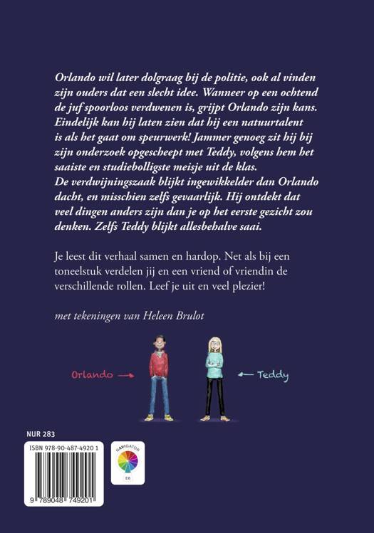 Orlando wil later dolgraag bij de politie, ook al vinden zijn ouders dat een slecht idee. Wanneer op een ochtend de juf spoorloos verdwenen is, grijpt Orlando zijn kans. Eindelijk kan hij laten zien dat hij een natuurtalent is als het gaat om speurwerk! De verdwijningszaak blijkt ingewikkelder dan Orlando dacht, en misschien zelfs gevaarlijk. Hij ontdekt dat veel dingen anders zijn dan je op het eerste gezicht zou denken. Zelfs klasgenoot Teddy blijkt allesbehalve saai …