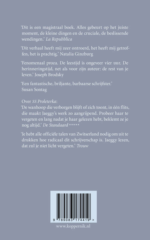 De Zwitsers-ltaliaanse schrijfster Fleur Jaeggy werd in Zürich geboren. In 2019 verschenen van haar in vertaling de verhalenbundel Ik ben de broer van XX en de roman SS Proleterka, die op de shortlist van de Europese Literatuurprijs stond. De gelukzalige jaren van tucht is haar bekendste roman die verscheen in 1989 en bekroond werd met de Premio Bagutta.