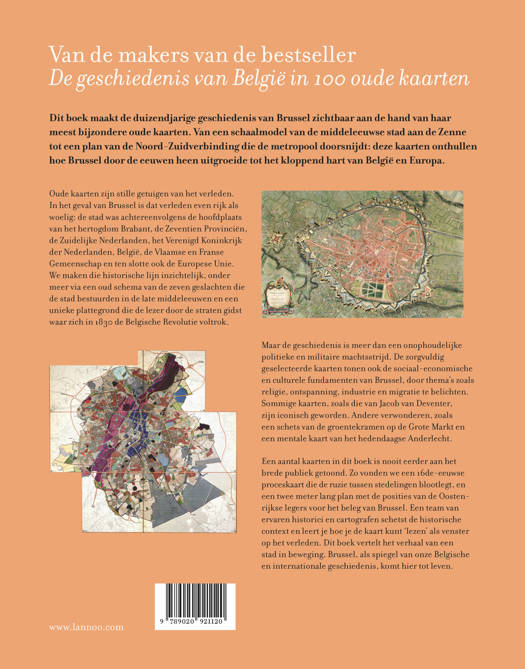 Oude kaarten zijn stille getuigen van het verleden. In het geval van Brussel is dat verleden even rijk als woelig: de stad was achtereenvolgens de hoofdplaats van het hertogdom Brabant, de Zeventien Provinciën, de Zuidelijke Nederlanden, het Verenigd Koninkrijk der Nederlanden, België, de Vlaamse en Franse Gemeenschap en ten slotte ook de Europese Unie. We maken die historische lijn inzichtelijk, onder meer via een oud schema van de zeven geslachten die de stad bestuurden in de late middeleeuwen en een unieke plattegrond die de lezer door de straten gidst waar zich in 1830 de Belgische Revolutie voltrok.