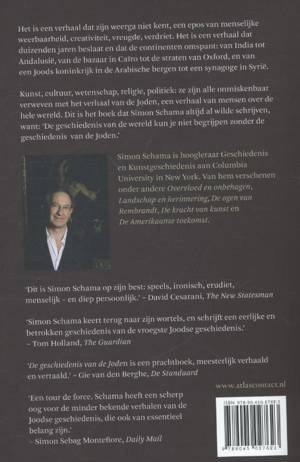 Dit is het eerste deel (van drie) van De geschiedenis van de Joden van Simon Schama. Het is een verhaal dat zijn weerga niet kent, een epos van menselijke weerbaarheid, creativiteit, vreugde, verdriet. Het is een verhaal dat duizenden jaren beslaat en dat de continenten omspant: van India tot Andalusië, van de bazaar in Caïro tot de straten van Oxford, en van een Joods koninkrijk in de Arabische bergen tot een synagoge in Syrië. Kunst, cultuur, wetenschap, religie, politiek: ze zijn alle onmiskenbaar verweven met het verhaal van de Joden, een verhaal van mensen over de hele wereld. Dit is het boek dat Simon Schama altijd al wilde schrijven, want: 'De geschiedenis van de wereld kun je niet begrijpen zonder de geschiedenis van de Joden.'