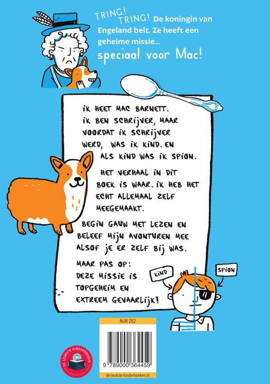 Sst… niet verklappen, maar Mac Barnett was geen gewoon kind, hij was geheim agent! En niet de minste: hij spioneerde voor de koningin van Engeland. In dit heerlijk geïllustreerde 7+-boek moet Mac B. in actie komen wanneer de juwelen van de koningin gestolen zijn. Hij reist de hele wereld over… maar vindt hij ze ook echt?
