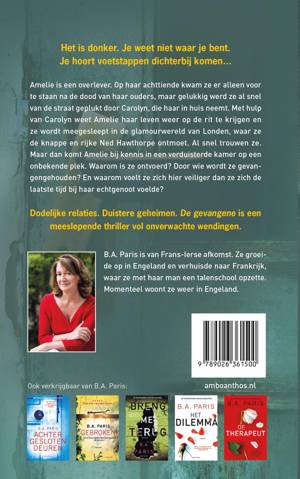Amelie is een overlever. Op haar achttiende kwam ze er alleen voor te staan na de dood van haar ouders, maar gelukkig werd ze al snel van de straat geplukt door Carolyn, die haar in huis neemt. Met hulp van Carolyn weet Amelie haar leven weer op de rit te krijgen en ze wordt meegesleept in de glamourwereld van Londen, waar ze de knappe en rijke Ned Hawthorpe ontmoet. Al snel trouwen ze. Maar dan komt Amelie bij kennis in een verduisterde kamer op een onbekende plek. Waarom is ze ontvoerd? Door wie wordt ze gevangengehouden? En waarom voelt ze zich hier veiliger dan ze zich de laatste tijd bij haar echtgenoot voelde?