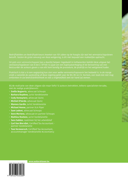 Bij de realisatie van de gids voor vennootschappen zijn maar liefst 12 auteurs betrokken, telkens specialisten terzake, met de nodige praktijkkennis :