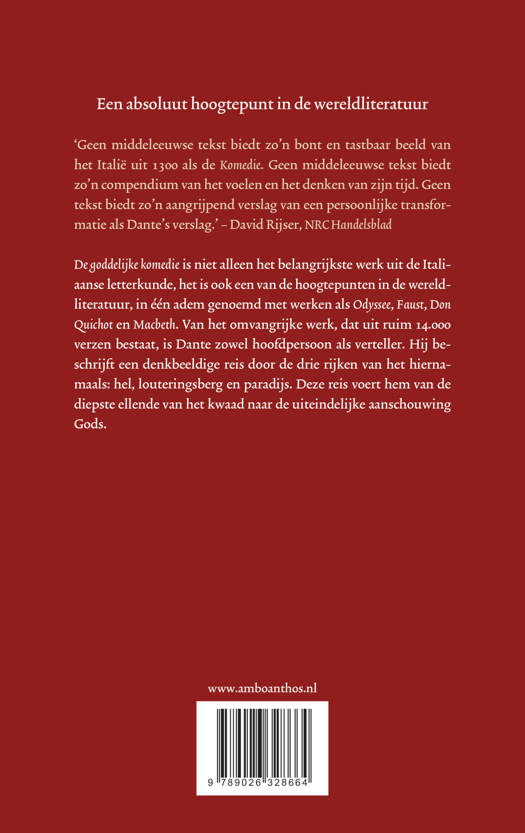 De goddelijke komedie is niet alleen het belangrijkste werk uit de Italiaanse letterkunde, het is ook een van de hoogtepunten van de wereldliteratuur, in één adem genoemd met werken als de Odyssee, Faust, Don Quichot en Macbeth.
