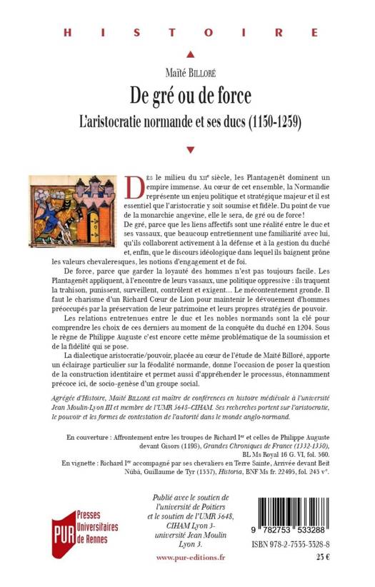 La dialectique aristocratie/pouvoir, placée au coeur de l’étude de Maïté Billoré, apporte un éclairage particulier sur la féodalité normande, donne l’occasion de poser la question de la construction identitaire et permet aussi d’appréhender le processus, étonnamment précoce ici, de socio-genèse d’un groupe social.