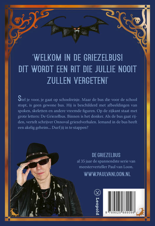 Herbeleef de Griezelbus 1 van Paul van Loon met deze nieuwe editie met het originele iconische omslag. In het eerste deel van de serie nodigt een bekend schrijver tijdens de Kinderboekenweek een leraar met zijn klas uit voor een speciale tocht met zijn griezelbus. Tijdens de rit zal de schrijver griezelverhalen voorlezen uit zijn nieuwe boek. Hierbij gebruikt hij een aantal voorwerpen die hij in de bus heeft uitgestald. Maar naarmate de tocht vordert, blijkt dat iemand in de bus een akelig geheim heeft. Of zijn er meer die iets verbergen?