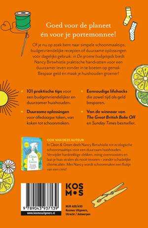 Van het gebruik van herbruikbare make-uppads tot het schoonmaken met azijn, in De groene budgetgids deelt Nancy Birtwhistle 101 bewezen lifehacks die goed zijn voor zowel de portemonnee als het milieu. Of je nu op zoek bent naar simpele schoonmaaktips, budgetvriendelijke recepten of duurzame oplossingen voor dagelijks gebruik – dit boek biedt praktische handvatten voor een duurzamer leven zonder in te boeten op gemak. Met haar jarenlange ervaring en creatieve oplossingen helpt Nancy je om met weinig middelen veel te bereiken. Bespaar geld én maak je huishouden groener!