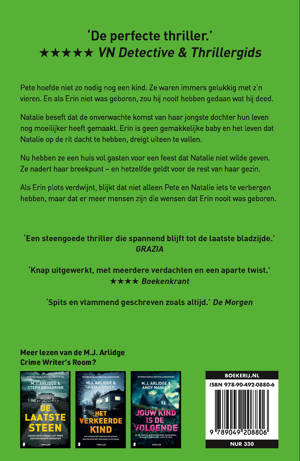 Ze verbergen allemaal iets en als Erin plots verdwijnt, wordt iedereen een verdachte. Natuurlijk zou niemand de baby kwaad doen, toch? Maar na het feest zijn er genoeg mensen die Natalie iets aan zouden willen doen. Zelfs haar man.