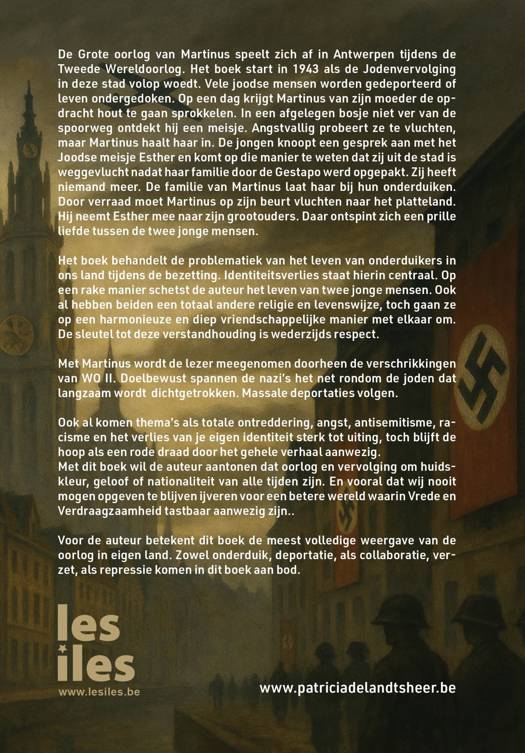 Antwerpen, 1943. Terwijl de Jodenvervolging in volle hevigheid woedt, stuurt Martinus’ moeder hem op pad om hout te sprokkelen. In een verlaten bosje stuit hij op Esther, een Joods meisje op de vlucht. Haar familie is opgepakt door de Gestapo — zij is alleen, angstig, en nergens meer veilig.