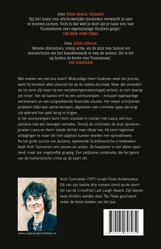Wat moeten we met ons leven? Wiskundige Henri Koskinen weet het pre cies, want hij berekent alles steevast tot op de laatste decimaal. Maar dat verandert als hij op dezelfde dag zowel zijn baan bij een verzekeringsmaat schappij als zijn broer verliest. Van de laatste erft hij een pretpark – inclu sief eigenaardige werknemers en een zorgwekkende financiële situatie. Het meest schrijnende probleem blijkt een aantal leningen, afgesloten met criminele types die erop gebrand zijn hun geld terug te krijgen. In het pretpark komt Henri intussen in contact met Laura, een artiest met een bewogen verleden. Terwijl de druk van de criminelen toeneemt, groeien Laura en hij steeds dichter naar elkaar toe. Henri komt tegenover uitdagingen te staan die niet kunnen worden opgelost in spreadsheets. Na het grote succes van duistere, spannende Scandinavische crimeboeken biedt Antti Tuomainen iets nieuws en unieks. De haasfactor is niet alleen spannend, maar ook ongelooflijk grappig. Een zeldzame combinatie, die het genre van de humoristische crime op de kaart zet.