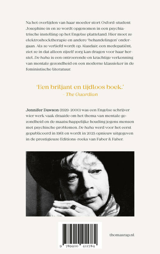 Na het overlijden van haar moeder stort Oxford-student Josephine in en wordt ze opgenomen in een psychiatrisch ziekenhuis op het Engelse platteland. Hier wordt ze onderworpen aan elektroshocktherapie en andere ‘behandelingen’. Als ze verliefd wordt op Alasdair, een medepatiënt, ziet ze in dat alleen zijzelf zorg kan dragen voor haar herstel. De haha is een ontroerend en krachtig onderzoek naar mentale gezondheid en een moderne klassieker in de feministische literatuur.
