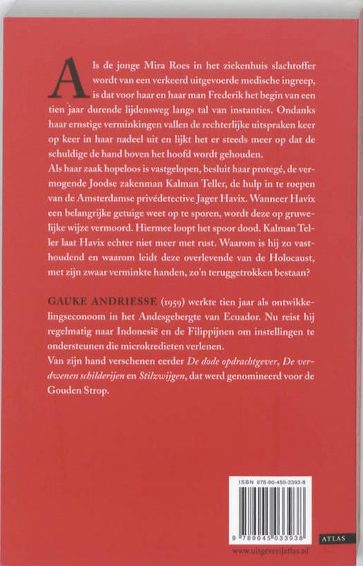 Als haar zaak hopeloos is vastgelopen, besluit haar protegé, de vermogende Joodse zakenman Kalman Teller, de hulp in te roepen van de Amsterdamse privédetective Jager Havix. Wanneer Havix een belangrijke getuige weet op te sporen, wordt deze echter op beestachtige wijze vermoord. Hiermee loopt het spoor dood. Maar Kalman Teller laat Havix niet meer met rust.
