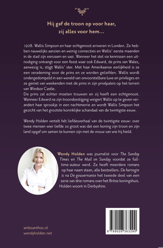 De hertogin en het tweede deel in de Windsor-outsiderserie, vertelt Wendy Holden hét liefdesverhaal van de twintigste eeuw: over twee mensen wier liefde zo groot was dat een koning zijn troon en zijn land opgaf om samen te kunnen zijn met de vrouw van wie hij hield.