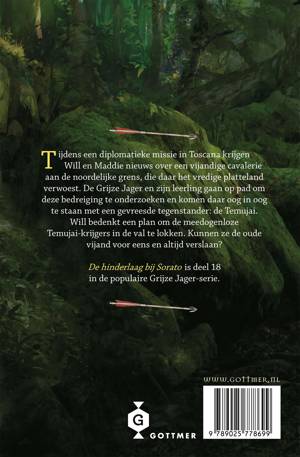 'De hinderlaag bij Sorato' is deel 18 van de spannende internationale bestsellerserie 'De Grijze Jager' van John Flanagan. Will en Maddie zijn op een diplomatieke missie in Toscana als een alarmerend bericht hen bereikt: een onstuimige cavalerie teistert het vredige platteland. De Grijze Jagers haasten zich naar het noordelijk front om deze mysterieuze dreiging te onderzoeken. Daar stuiten ze op een oude vijand: de Temujai. Het strijdlustige volk is op zoek naar een zwakke plek om Sorato, een kleine ommuurde stad in het noordwesten van Toscana, binnen te dringen en aan te vallen. De Toscaanse strijdkrachten verweren zich dapper, maar Will en Maddie weten als geen ander hoe onbedwingbaar deze vijand is. De Jagers bereiden een hinderlaag voor, maar is het genoeg om de Temujai voor eens en altijd te verslaan?