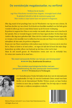 'Welkom bij de familie,' zegt Nina Winchester terwijl ik haar elegante, verzorgde hand schud. Ik glimlach beleefd en kijk de marmeren gang rond. Hier werken is mijn laatste kans om opnieuw te beginnen. Maar ik zal snel ontdekken dat de geheimen van de Winchesters veel gevaarlijker zijn dan de mijne...Elke dag maak ik het prachtige huis van de Winchesters van top tot teen schoon. Ik haal hun dochter op van school. En ik kook een heerlijke maaltijd voor het hele gezin voordat ik alleen ga eten in mijn kleine kamer op de bovenste verdieping.Ik probeer te negeren hoe Nina er een zooitje van maakt, alleen maar om te zien hoe ik het opruim. Hoe ze vreemde leugens vertelt over haar eigen dochter. En hoe haar man Andrew elke dag meer gebroken lijkt. Maar als ik in Andrews knappe bruine ogen kijk, zo vol pijn, is het moeilijk voor te stellen hoe het zou zijn om Nina's leven te leiden. De inloopkast, de luxe auto, de perfecte echtgenoot.Ik pas een van Nina's smetteloze witte jurken maar één keer. Gewoon om te zien hoe het is. Maar ze komt er al snel achter... en tegen de tijd dat ik besef dat mijn slaapkamerdeur op zolder alleen van buitenaf op slot kan, is het veel te laat.Maar ik stel mezelf gerust: de Winchesters weten niet wie ik werkelijk ben.Ze weten niet waartoe ik in staat ben...