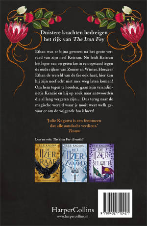 De IJzerprins heeft ons allemaal verraden...Hij heeft me vermoord.Maar toen werd ik wakker...Mijn naam is Ethan Chase, en ik was er bijna geweest nadat mijn neef Keirran zijn zwaard in mijn buik stak. Wonderbaarlijk genoeg heb ik het overleefd, maar blijkbaar heb ik heel wat gemist terwijl ik bewusteloos was. De onzichtbare sluier, die de mensenwereld van de wereld van de fae scheidt, is heel even weggetrokken. Hoewel de mensen maar een glimp van Nimmernimmer hebben opgevangen, brak de pleuris uit! En met alle emoties die dat opriep, kon de Vergeten Koningin haar krachten terugkrijgen. Shit happens... Nu leidt Keirran het leger van Vergeten fae in een opstand tegen de oude rijken van Zomer en Winter. Ik haat die magische rotwereld, maar hier kan ik mijn neef dus echt niet mee weg laten komen! Wat voor regels ik er ook voor moet overtreden, ik zál hem tegenhouden!Zelfs als dat betekent dat ik moet gaan samenwerken met mijn oude vijanden, de fae...'Je leest eigenlijk geen boek, maar je maakt het zelf mee!' - Young-Adults.nl'Kagawa houdt altijd de vaart in haar verbeeldingsrijke wereld. Fans zullen meer dan tevreden zijn over dit laatste deel.' - Booklist