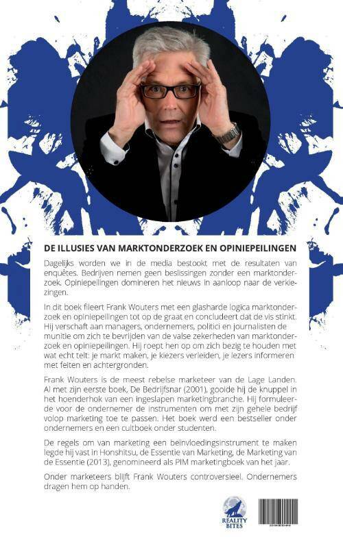 Waarom worden er jaarlijks nog miljarden besteed aan marktonderzoek en opiniepeilingen? Haarscherp toont Frank Wouters aan hoe marktonderzoeken en opiniepeilingen voortdurend de bal misslaan. Ze zijn gebaseerd op illusies.