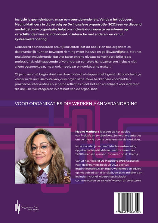 Inclusie is geen eindpunt, maar een voortdurende reis. Vandaar introduceert Madhu Mathoera in dit vervolg op De inclusieve organisatie (2022) een verdiepend model dat jouw organisatie helpt om inclusie duurzaam te verankeren op verschillende niveaus: individueel, in interactie met anderen, en vanuit systeemverandering. Gebaseerd op honderden praktijkinzichten laat dit boek zien hoe organisaties daadwerkelijk kunnen bewegen richting meer inclusie en gelijkwaardigheid. Met het praktische inclusiemodel dat vier fasen en drie niveaus combineert, krijg je als professional, leidinggevende of veranderaar concrete handvatten om inclusie niet alleen bespreekbaar, maar ook meetbaar en werkbaar te maken. Of je nu aan het begin van deze route staat of al stappen hebt gezet: dit boek helpt je verder in de inclusieroute van jouw organisatie. Door herkenbare voorbeelden, praktische interventies en scherpe reflecties biedt het een routekaart voor iedereen die inclusie wil integreren in het hart van de organisatie.