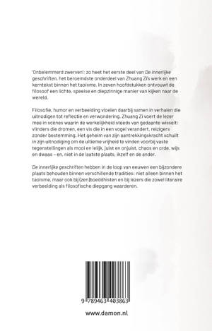 Filosofie, humor en verbeelding vloeien daarbij samen in verhalen die uitnodigen tot reflectie en verwondering. Zhuang Zi voert de lezer mee in scènes waarin de werkelijkheid steeds van gedaante wisselt: vlinders die dromen, een vis die in een vogel verandert, reizigers zonder bestemming. Het geheim van zijn aantrekkingskracht schuilt in zijn uitnodiging om de ultieme vrijheid te vinden voorbij vaste tegenstellingen als mooi en lelijk, juist en onjuist, chaos en orde, wijs en dwaas – en, niet in de laatste plaats, ikzelf en de ander.