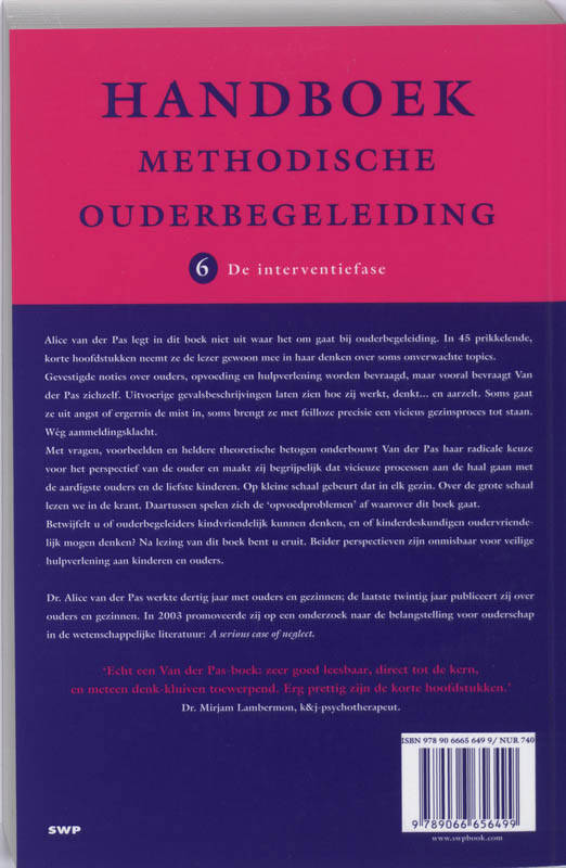 Met vragen, voorbeelden en heldere theoretische betogen onderbouwt Van der Pas haar radicale keuze voor het perspectief van de ouder - en maakt zij begrijpelijk dat vicieuze processen aan de haal gaan met de aardigste ouders en de liefste kinderen. Op kleine schaal gebeurt dat in elk gezin. Over de grote schaal lezen we in de krant. Daartussen spelen zich de 'opvoedproblemen' af waarover dit boek gaat.
