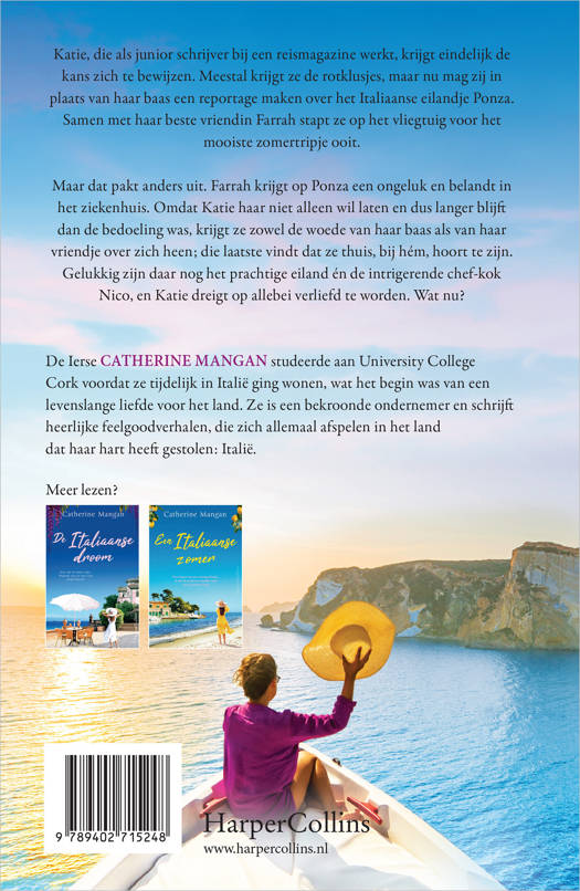 Maar dat pakt anders uit. Farrah krijgt op Ponza een ongeluk en belandt in het ziekenhuis. Omdat Katie haar niet alleen wil laten en dus langer blijft dan de bedoeling was, krijgt ze zowel de woede van haar baas als van haar vriendje over zich heen; die laatste vindt dat ze thuis, bij hém, hoort te zijn. Gelukkig zijn daar nog het prachtige eiland én de intrigerende chef-kok Nico, en Katie dreigt op allebei verliefd te worden. Wat nu?
