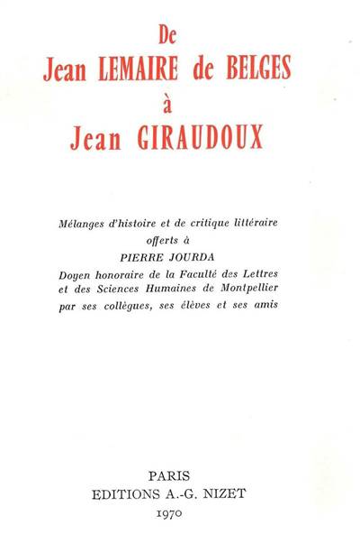Cet ouvrage rassemble, en hommage au grand spécialiste des lettres Pierre Jourda, une série d'articles littéraires très variés, allant de Jean Lemaire de Belges (1473-1524) à Jean Giraudoux.
