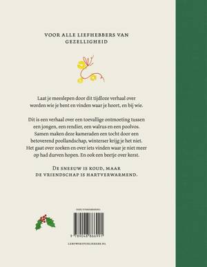 Dit is een verhaal over een toevallige ontmoeting tussen een jongen, een rendier, een walrus en een poolvos. Samen maken deze innemende kameraden (want dat worden ze) hun tocht door een betoverend poollandschap. De sneeuw is koud, maar de vriendschap is hartverwarmend. Laat je meeslepen door dit tijdloze verhaal over worden wie je bent en vinden waar je hoort, en bij wie.
