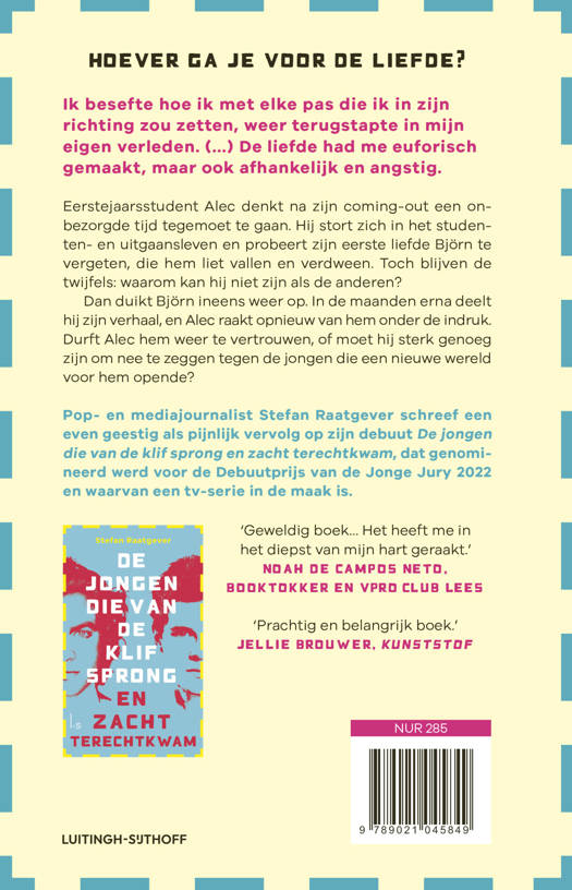 Stefan Raatgever schreef een even grappig als pijnlijk vervolg op De jongen die van de klif sprong en zacht terechtkwam, zijn YA-debuut dat genomineerd was voor de Jonge Jury Debuutprijs 2023 en dat verfilmd wordt. In De jongen die de tijd wilde stopzetten probeert een eerstejaarsstudent na zijn coming-out zijn eigen weg te vinden, maar hoever gaat hij voor de liefde?