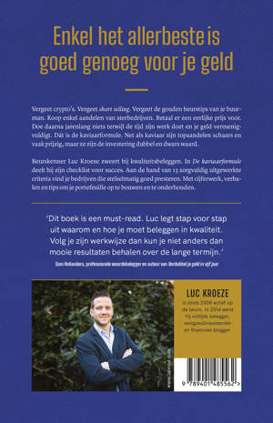 Beurskenner Luc Kroeze zweert bij kwaliteitsbeleggen. In De kaviaarformule deelt hij zijn checklist voor succes. Aan de hand van 13 zorgvuldig uitgewerkte criteria vind je bedrijven die stelselmatig goed presteren. Met cijferwerk, verhalen en tips om je portefeuille zorgvuldig op te bouwen en te onderhouden.