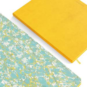formaat: 11 x 16 cm, met een zee aan schrijfruimte, 160 p. crèmekleurig FSC papier, zacht voor de ogen, 90 g FSC-papier, snel absorberend en niet-doorschijnend, blanco papier, volledig vlakliggend door een speciale bindtechniek, aangename en soepele kaft in PU (polyethyleen), kaft, leeslint en papierranden in de kleur Independent (geel), met aangepaste schutbladen in marmerpapier, unieke schuine hoekjes