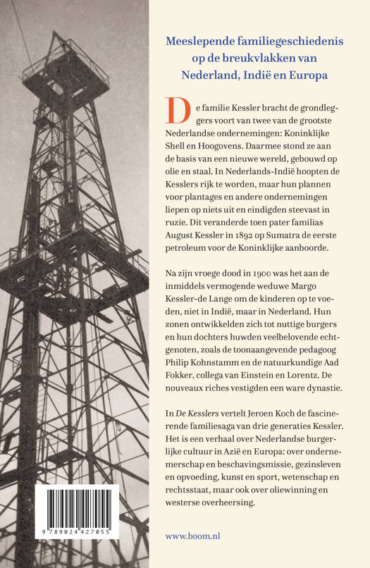 In De Kesslers vertelt Jeroen Koch de fascinerende familiesaga van drie generaties Kessler. Het is een verhaal over Nederlandse burgerlijke cultuur in Azië en Europa: over ondernemerschap en beschavingsmissie, gezinsleven en opvoeding, kunst en sport, wetenschap en rechtsstaat, maar ook over oliewinning en westerse overheersing.
