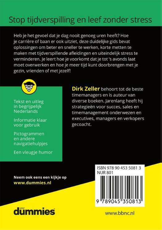Dirk Zeller behoort tot de beste timemanagers en is auteur van diverse boeken. Jarenlang heeft hij strategieen voor succes, sales en timemanagement onderwezen en executives, managers en verkopers gecoacht.
