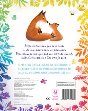 Ga mee met vos en welpje en zie hoe hun liefde terugkomt in alle kleuren van de natuur. Op elke bladzijde verschijnt een lint, en alle linten samen vormen een regenboog in de lucht!
