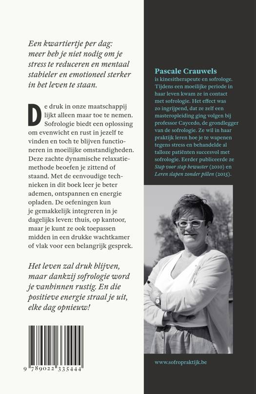 De druk in onze maatschappij lijkt alleen maar toe te nemen. Sofrologie biedt een oplossing om evenwicht en rust in jezelf te vinden en toch te blijven functioneren in moeilijke omstandigheden. Deze zachte dynamische relaxatie-methode beoefen je zittend of staand. Met de eenvoudige technieken in dit boek leer je beter ademen, ontspannen en energie opladen. De oefeningen kun je gemakkelijk integreren in je dagelijks leven: thuis, op kantoor, maar je kunt ze ook toepassen midden in een drukke wachtkamer of vlak voor een belangrijk gesprek.