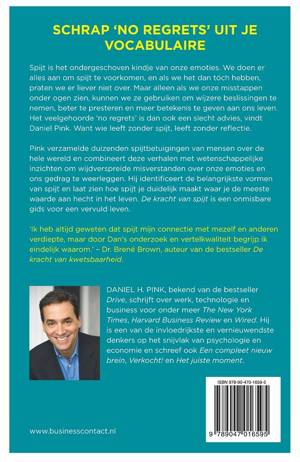 Schrap 'no regrets' uit je vocabulaire, adviseert Daniel Pink in 'De kracht van spijt'. Spijt is het ondergeschoven kindje van onze emoties. We doen er alles aan om spijt te voorkomen en als we het dan tóch hebben, praten we er liever niet over. Maar alleen als we onze fuck-ups onder ogen zien, kunnen we ze gebruiken om wijzere beslissingen te nemen, beter te presteren en meer betekenis te geven aan ons leven. Het veelgehoorde 'no regrets' is dan ook een slecht advies, volgens Daniel Pink. Want wie leeft zonder spijt, leeft zonder reflectie. In dit boek maakt Pink gebruik van wetenschappelijke inzichten om wijdverspreide misverstanden over onze emoties en ons gedrag te weerleggen. Hij identificeert de belangrijkste vormen van spijt en laat zien hoe spijt je duidelijk maakt waar je de meeste waarde aan hecht in het leven. 'De kracht van spijt' is een onmisbare gids voor een vervuld leven.