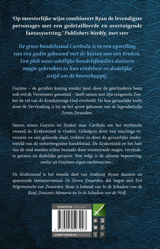 In De Krakentand, het tweede deel in De Zeven Zwaarden-serie van Anthony Ryan, vervolgt Guyime zijn zoektocht naar de Zeven Zwaarden. Zijn volgende doel: het mythische zwaard ‘de Krakentand’. Geleid door de magie reist Guyime naar Cathula, in het midden van de Eerste Zee, om dit zwaard op te sporen.